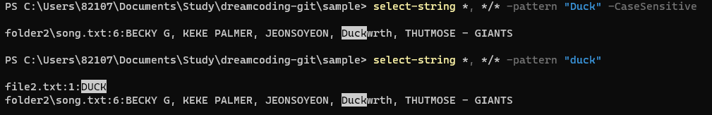 - ๋์๋ฌธ์๋ฅผ ๊ตฌ๋ถํ๋ ค๋ฉด -CaseSensitive ๋ฅผ ๋ถ์ฌ์ผํจ