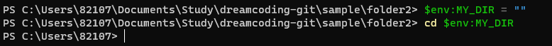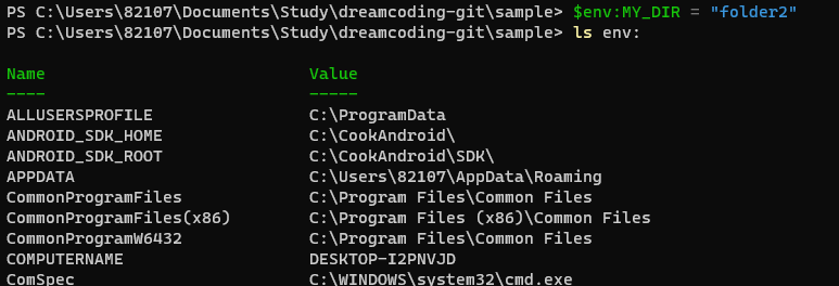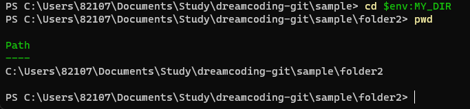 - cd $env:ํ๊ฒฝ๋ณ์ (enter ํ) ๊ฐ : ํ๊ฒฝ๋ณ์ ์ฌ์ฉ