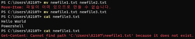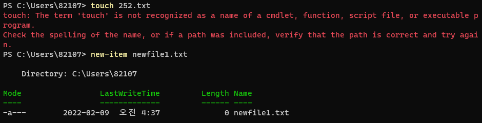 - new-item ํ์ผ ์ด๋ฆ : ์ ํ์ผ ์์ฑ(bash์์์ touch์ ๊ฐ์ ์ญํ )