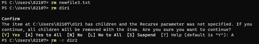 - rm -r ๋๋ ํ ๋ฆฌ ๋๋ rm ๋๋ ํ ๋ฆฌ/ -Recurse : ๋๋ ํ ๋ฆฌ ์ ๊ฑฐ (bash๋ rm๋ค์ -r์ ๋ถ์ฌ์ผ๋งํจ)