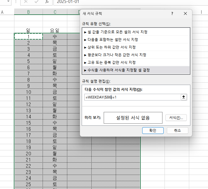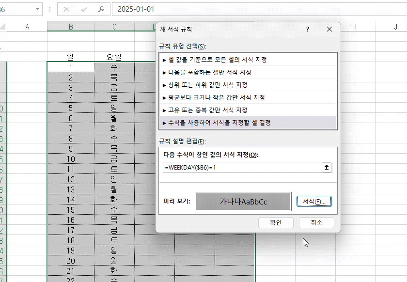=WEEKDAY($1์ผ ๋ถ๋ถ์ ์ ) = 1