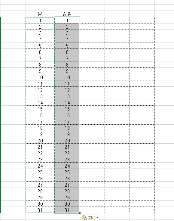๋ ์ง๋ฅผ ์ ์ฒด ์ ํํด ๋ณต์ฌ + ๋ถ์ฌ๋ฃ๊ธฐ ํด๋ ํ, ์ผ ํ์์ ๋์ผํ๊ฒ ์ ์์์ ํ์ ํ์์ ๋ค์ด๊ฐ๋ค.