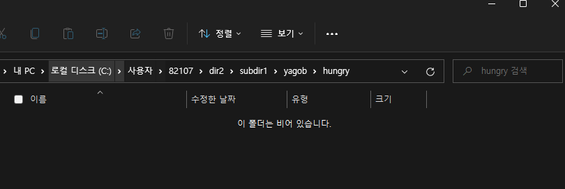 ๋ ฅ์ ํด๋น ํด๋๋ก ์ด๋ํจ (๋จ ํ์ฌ ๊ฒฝ๋ก ์์ ํด๋๊ฐ ์กด์ฌํด์ผ ํจ)