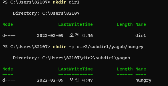 mkdir ์์ -p๋ฅผ ๋ถ์ด๊ณ ๊ฒฝ๋ก ์์ ๊ฒฝ๋ก ์์ ๊ฒฝ๋ก~~๋ฅผ ๋ง๋ค์ ์์