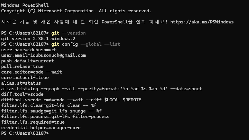 Git์ ์์ ์ ์ค์นํ์ด์ ํ์ธ๋ง ํด์คฌ๋ค.