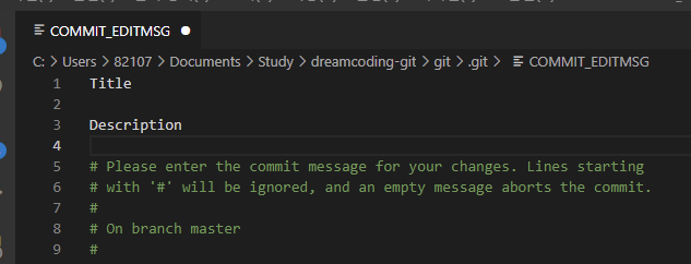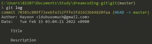 ์ผ๋จ Title๊ณผ Description์ ์ ์ด์ฃผ๊ณ (๋ด์ฉ ์์ด ์ง์ง ์ค๋ค๋ง ์ ๊ธด ํ์ง๋ง...) ์ ์ฅ ํ ๋ค์ ํฐ๋ฏธ๋๋ก ๋์๊ฐ๋ฉด ์ปค๋ฐ ๊ฒฐ๊ณผ๋ฅผ ๋ณด์ฌ์ค๋ค.