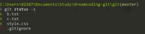 -s๋ ์ด๋ฅผ ๊ฐ๋จํ ํ์ธํ ์ ์๊ณ , -b๋ branch์ ๊ด๋ จ๋ ์ ๋ณด๋ฅผ ํ์ธํ ์ ์๋ค.