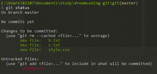 ๊ทธ๋ฆฌ๊ณ ์ผ์ชฝ ์บก์ณ์์ git rm --cached <file> ...์ ์ด์ฉํ์ฌstaging area -> working directory๋ก ์ด๋ํ ์ ์์์ ํ์ธํ ์ ์๋ค.