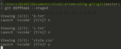 git difftool ์ค์์๋ staged์ธ ๊ฒ์ ํ์ธํด๋ณด๊ณ ์ถ์ ๋, git difftool --staged๋ผ๊ณ ์ ๋ ฅํ๋ฉด ํ๋ํ๋ ์น์ ํ๊ฒ ๋ฌผ์ด๋ด์ค๋ค. y๋ผ๊ณ ๋ตํ๋ฉด ์ด์ด์ค๋ค.