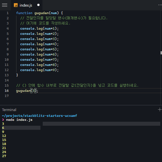 - return : ํจ์ ๋ด๋ถ์ ์ฝ๋๊ฐ ์คํ๋ ํ ๊ฒฐ๊ณผ๋ฅผ ๋ฐํํ๋ ํค์๋
