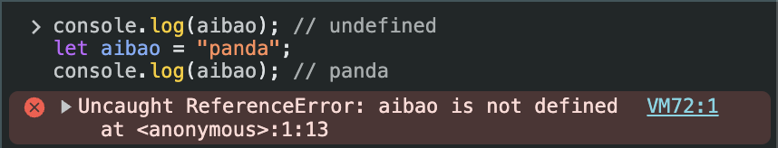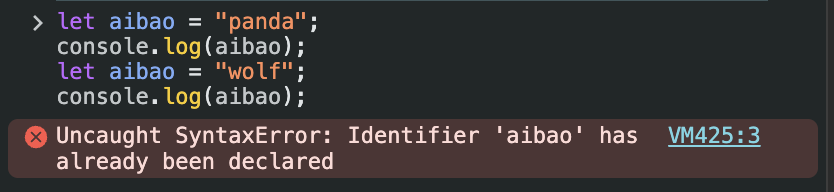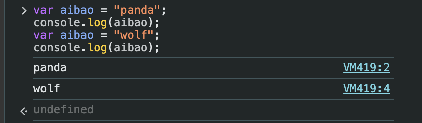 let์ ๊ฒฝ์ฐ aibao๋ ์ด๋ฏธ ์ ์ธ๋์๋ค๋ฉฐ ์๋ฌ๊ฐ ๋ฐ์ํ์ง๋ง, var๋ก ์ ์ธํ aibao๋ ์๋์ ๊ฐ์ด ๋๋๊ฐ๋๋ค...
