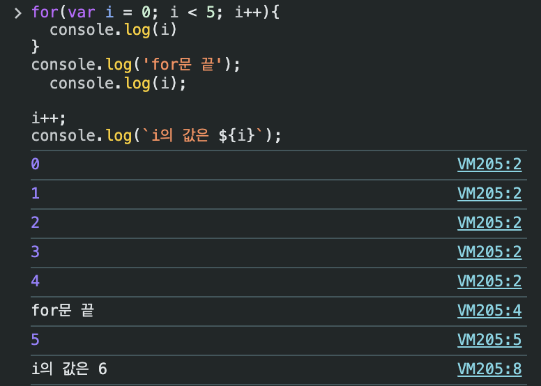 console.log(`i์ ๊ฐ์ ${i}`);