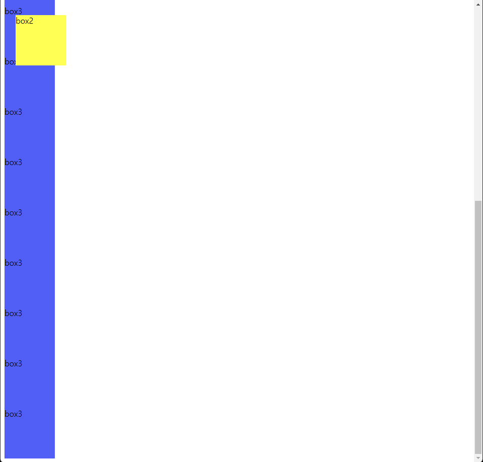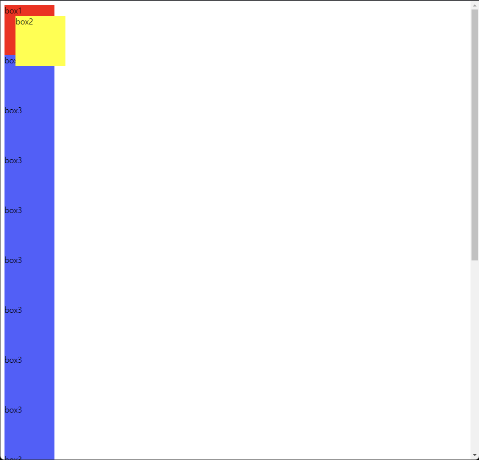 ์ฌ๊ธฐ์ position์ absolute๋ก ๋ฐ๊พธ๋ฉด ์คํฌ๋กค์ ๋ด๋ ค๋ ๋นจ๊ฐ๋ฐ์ค ์์ ๊ฒน์ณ์ ธ ์๋ณด์ด๊ฒ ๋จ์ ํ์ธํ ์ ์๋ค. (์ ๋ฐ๋ผ์ด)