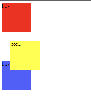 # yellow ๋ฐ์ค์ locate ํด๋์ค{ top : 30px; left : 30px; position : relative; }๋ฅผ ์ถ๊ฐํ์ ๋