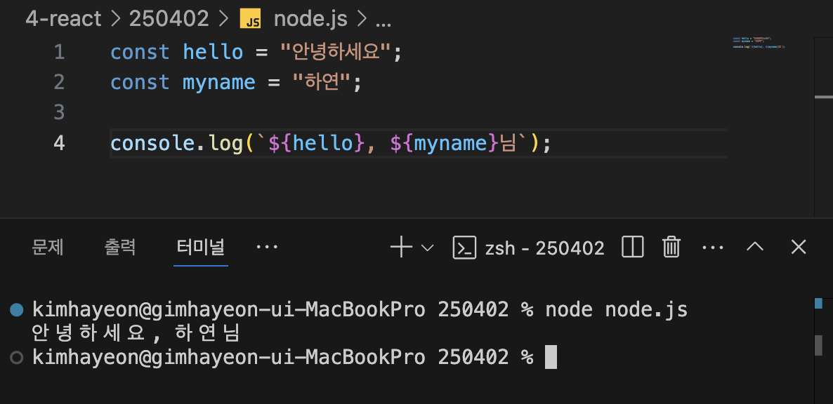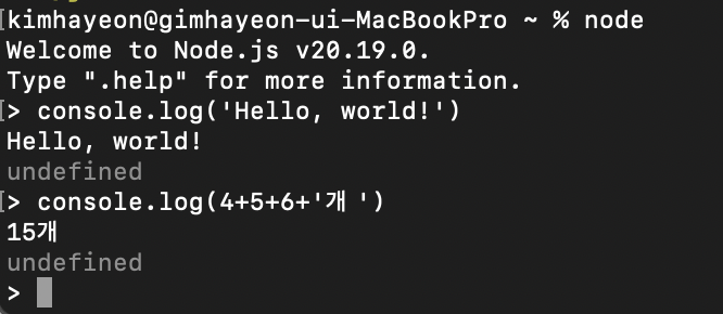 ํฐ๋ฏธ๋์ node๋ฅผ ์ ๋ ฅํ ํ, ์ฝ๋๋ฅผ ์ ๋ ฅํด๋ณด๋ฉด ๋ธ๋ผ์ฐ์ ์ ์ฝ์์ฐฝ์ฒ๋ผ ์ ์คํ๋๋ ๊ฒ์ ๋ณผ ์ ์๋ค!