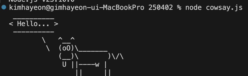 2-2-1. ํฐ๋ฏธ๋์ node cowsay.js ๋ช ๋ น์ด ์ ๋ ฅ