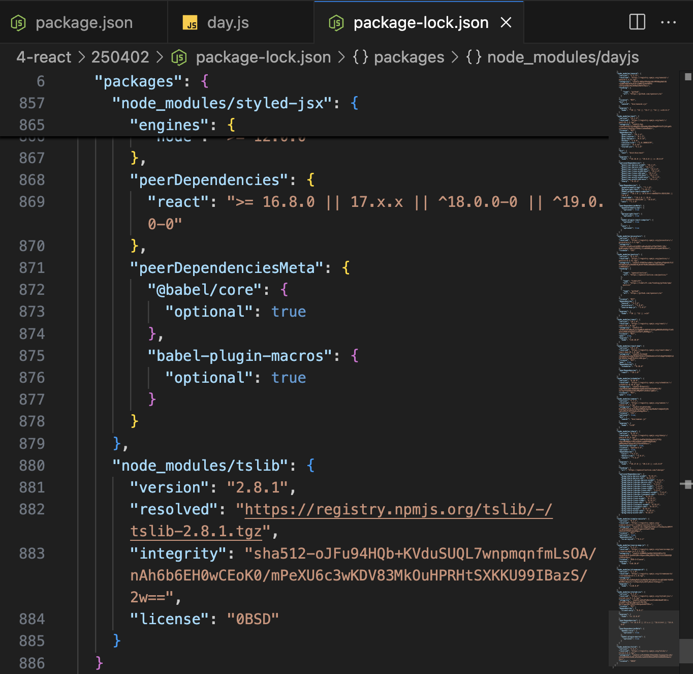 ์๊น day.js๋ฅผ ์ค์นํ ์ดํ๋ก package-lock.json์ด๋ผ๋ ํ์ผ์ด ์์ฑ๋๋๋ฐ,