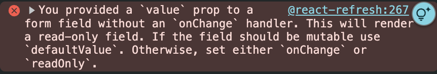 ์ด ๋ ์ด๋ ๊ฒ input ์์์ ๊ฐ๊ณผ ๋ฆฌ์กํธ์ ์ํ์ ์์ ํ ์ฐ๋๋์ด์์ ๋, ํด๋น ์ปดํฌ๋ํธ๋ฅผ Controlled Component ๋ผ๊ณ ๋ ํ๋ค.