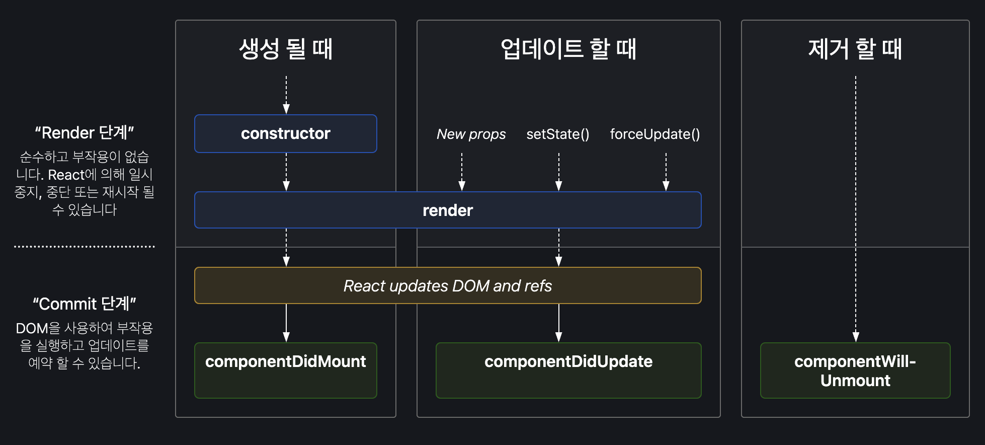 ์ปดํฌ๋ํธ๊ฐ ์์ฑ๋๊ณ , ๋ ๋๋ง ๋ ํ ์๋ฉธ๋ ๋๊น์ง์ ๊ณผ์ ์ ์๋ฏธํ๋ค.