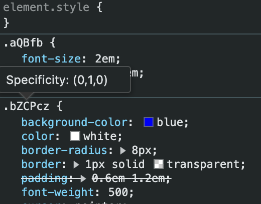 ์ด๋ styled components์์ ๋ด๊ฐ ์ปดํฌ๋ํธ์ ์์ฑํ ์คํ์ผ ๋ด์ฉ๋ค์ css๋ก ์ ์ฉ์ํฌ ๋, ์์ฒด์ ์ผ๋ก ์์์ ํด๋์ค๋ช ์ ์์ฑํด ์ค์ ํด์ฃผ๋ ๊ฒ์ ์ ์ ์๋ค.