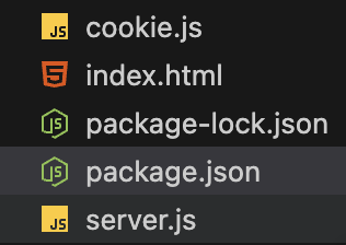 ์์ฑํ ํ์ผ์ index.html, cookie.js, server.js