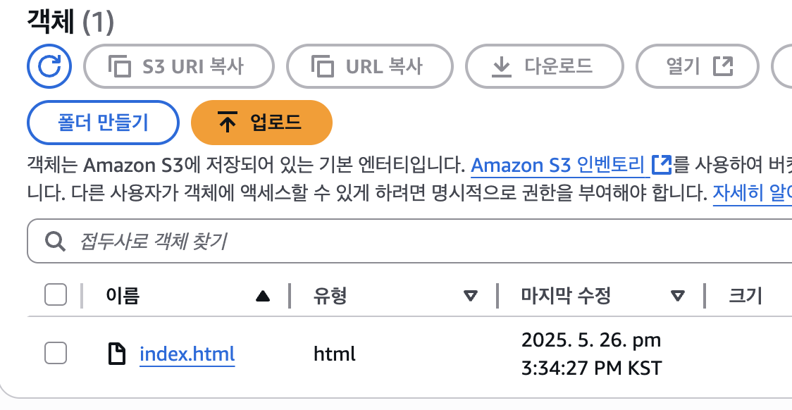 S3์์ ๋ฒํท ์ ํ ๋ฐ ๋ฒํท์ ์ ๋ก๋ํ๋ ๊ฐ๋จํ ์ค์ต์ด๋ค.