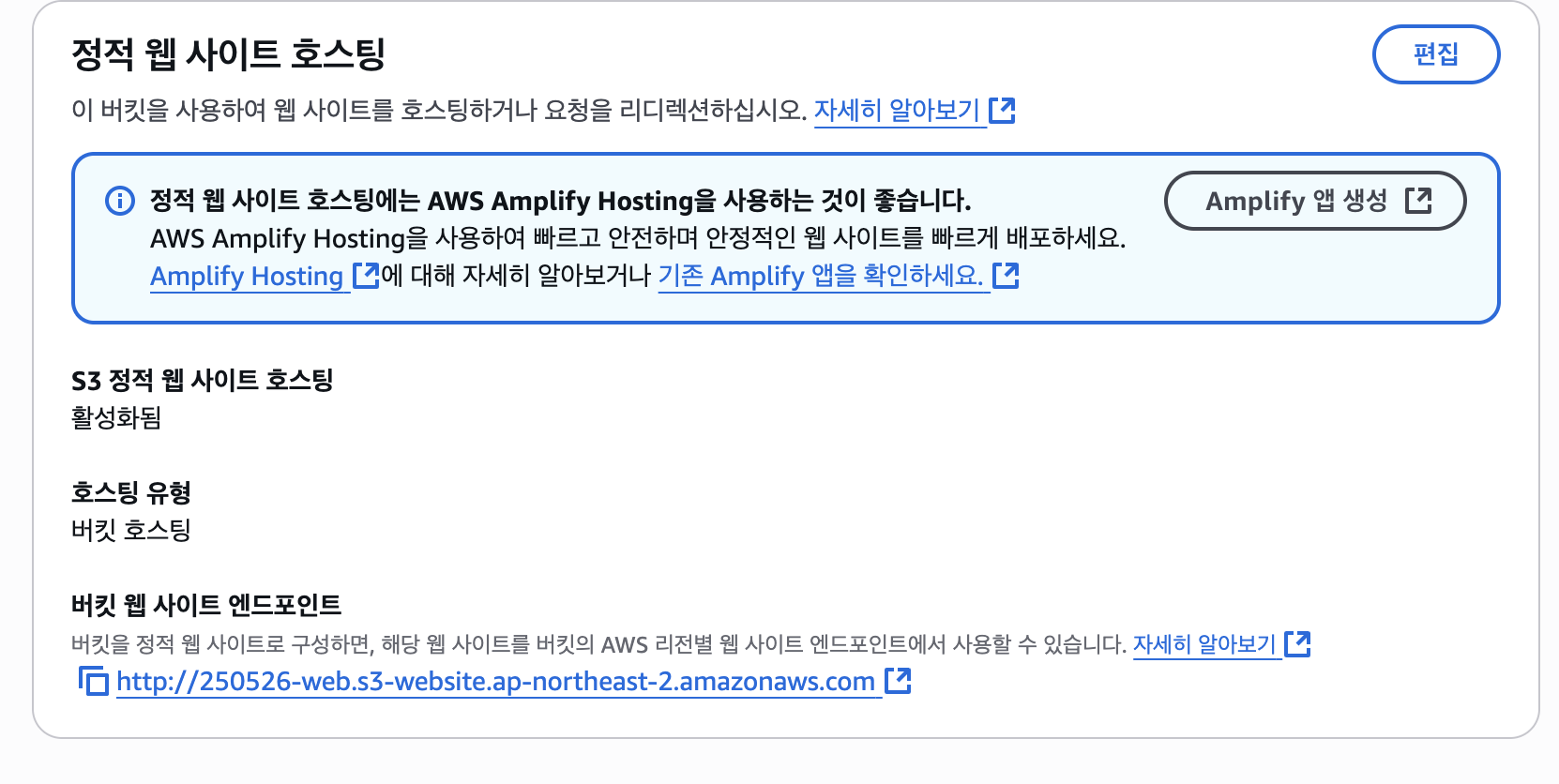 ๊ธฐ๋ฅ : s3๋ฅผ ํตํด์ ์นํ์ด์ง๋ฅผ ๋ฐฐํฌํ ์ ์์