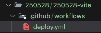 ๊ทธ๋ฆฌ๊ณ ํ๋ก์ ํธ ํด๋ ๋ด ์ต์๋จ์ ๋ค์๊ณผ ๊ฐ์ด ํด๋ ๋ฐ ํ์ผ์ ์์ฑํ๋ค. Github Actions๋ฅผ ์คํ์ํค๊ธฐ ์ํด์๋ ๋ฐ๋์ ๋ง๋ค์ด์ค์ผ๋๋ค..